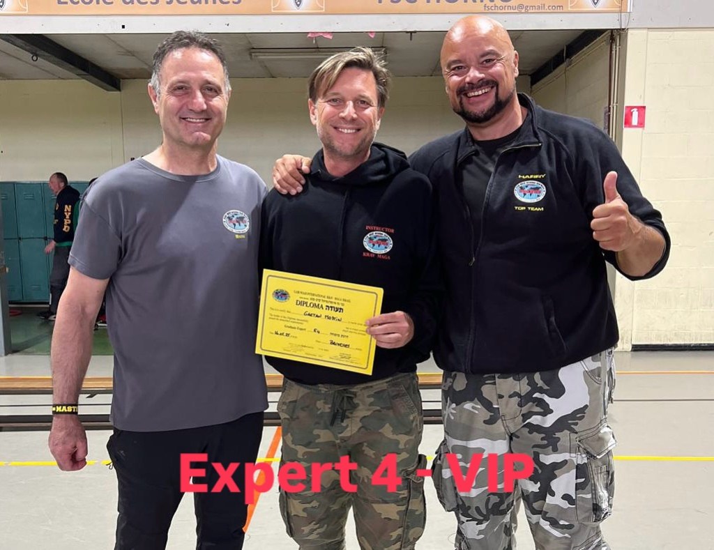 j’ai l’immense plaisir de vous annoncer que j’ai réussi mon passage de grade Expert 4. C’est le 14e grade en Krav Maga et l’avant dernier avant de passer Maître.