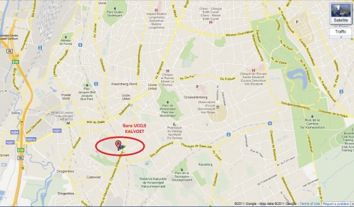 (Remonter la rue juste en face de la gare de Calevoet (50m) du côté du restaurant le Schievelavabo, PAS du côté Chaussée d’Alsemberg)